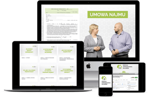 Całe szkolenie „Szkoła Zarządzania Najmem” jest w formie nagrań wideo i dostępna online, kiedy chcesz, przez Internet przez 12 miesięcy od zakupu.
